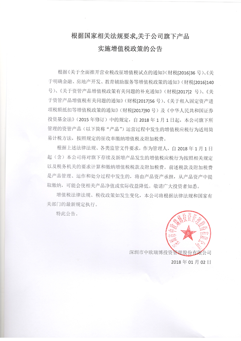 根據(jù)國(guó)家相關(guān)法規(guī)要求,關(guān)于公司旗下產(chǎn)品實(shí)施增值稅政策的公告