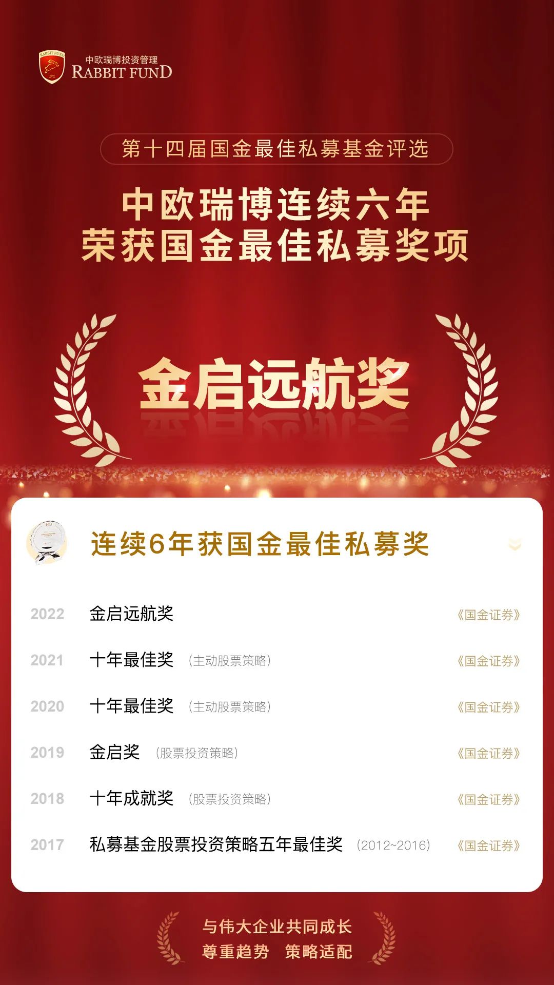 中歐瑞博成立以來穩(wěn)健發(fā)展,目前管理規(guī)模超200億,核心投研人員平均從業(yè)年限超8年。十五年來,我們始終將客戶利益放在第一位,以“為客戶創(chuàng)造價(jià)值”為己任,專注打造投研核心實(shí)力,致力于為客戶創(chuàng)造可持續(xù)的投資收益。這是中歐瑞博第六次獲得國金最佳私募獎,是對我們過往努力的認(rèn)可,也是激勵我們不斷向前的動力。