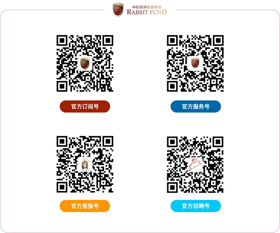 2、名為“中歐瑞博(訂閱號:rabbitfund)”、“瑞博服務(wù)(服務(wù)號:zorbservice)”的微信公眾號是本公司唯一合法的官方微信公眾號,已通過微信公眾平臺認定;“中歐瑞博客服-兔小寶(ID: rabbitfundservice)”的微信號是本公司唯一合法的官方客服微信號;“中歐瑞博-人力資源部”(微信號:zorb2007)是本公司唯一合法的官方招聘微信號;附微信二維碼在本文底部。