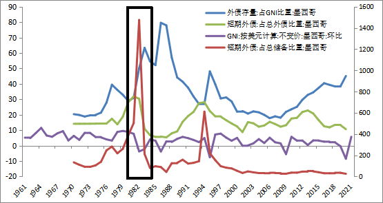 編者按 本文依據(jù)中歐瑞博合伙人、聯(lián)席投資總監(jiān)、量化投資部總監(jiān)黃松杰近期交流的主要內(nèi)容整理而成,提煉其核心邏輯與重要結(jié)論,供投資者參閱。歡迎在評(píng)論區(qū)發(fā)表您的觀點(diǎn),與我們交流探討。 中歐瑞博量化投資團(tuán)隊(duì)在投研體系中擔(dān)任,逐步將投資方法模型化的角色,為主動(dòng)投資提供倉(cāng)位和行業(yè)配置比例等建議及數(shù)據(jù)支持,增加投資和決策的科學(xué)性,減少藝術(shù)性。 中歐瑞博近30人投研團(tuán)隊(duì)持續(xù)根據(jù)市場(chǎng)變化進(jìn)行專題研究,以史為鑒,輸出專題報(bào)告及結(jié)論,以期對(duì)投資組合實(shí)現(xiàn)策略適配提供參考。 當(dāng)下,美聯(lián)儲(chǔ)持續(xù)激進(jìn)加息,美元處于升值周期,或?qū)?dǎo)致新興市場(chǎng)國(guó)家爆發(fā)新一輪危機(jī)。通過(guò)對(duì)過(guò)往兩輪危機(jī)的回顧,我們認(rèn)為,若新興市場(chǎng)發(fā)生危機(jī),美聯(lián)儲(chǔ)政策遲遲不轉(zhuǎn)向,美元會(huì)是一個(gè)比較好的投資品種,其次是美股,危機(jī)國(guó)的股市也有做空機(jī)會(huì)。 歷史上經(jīng)典的由美元指數(shù)升值導(dǎo)致的,新興市場(chǎng)國(guó)家債務(wù)危機(jī)共發(fā)生過(guò)兩次:1982年拉美債務(wù)危機(jī),美元指數(shù)漲95%;1997年亞洲金融危機(jī),美元指數(shù)漲50%。 我們將通過(guò)對(duì)這兩輪危機(jī)發(fā)生的前因后果,及彼時(shí)美股、美元、美債、黃金、匯率、危機(jī)國(guó)股市等各大類資產(chǎn)所蘊(yùn)含的投資機(jī)會(huì)進(jìn)行剖析,為當(dāng)前可能爆發(fā)的新一輪危機(jī)提供應(yīng)對(duì)之策。 1982年拉美債務(wù)危機(jī) 危機(jī)爆發(fā)前: 經(jīng)濟(jì)高速發(fā)展,外債迅速膨脹 20世紀(jì)70年代,許多拉美國(guó)家為加速本國(guó)經(jīng)濟(jì)發(fā)展,制訂了過(guò)于龐大的發(fā)展計(jì)劃,但拉美國(guó)家普遍儲(chǔ)蓄率偏低,為了維持較高的投資水平,只能舉借外債保證資金供給。 以進(jìn)行大規(guī)模石油開(kāi)發(fā)的墨西哥為例,1978年至1981年墨西哥經(jīng)濟(jì)保持8%-9%的高增速。受益于美聯(lián)儲(chǔ)寬松貨幣政策,同期墨西哥的債務(wù)總額增長(zhǎng)近20倍,從1970年代初期的50億美元激增至1982年危機(jī)爆發(fā)前的876億美元;債務(wù)規(guī)模的膨脹速度遠(yuǎn)超GDP增速,1982年墨西哥外債余額占GDP的比重高達(dá)63.8%。 同樣大幅增加投資的巴西、阿根廷等國(guó),外債占比也均由70年代的20%以下升至80年代的50%以上。 危機(jī)爆發(fā): 美聯(lián)儲(chǔ)加息,大宗商品下行 1978年伊朗、伊斯蘭革命爆發(fā),引發(fā)第二次石油危機(jī),危機(jī)加劇了西方國(guó)家的滯脹。時(shí)任美聯(lián)儲(chǔ)主席沃爾克為抑制通脹強(qiáng)硬加息,1979年至1982年持續(xù)采取緊縮貨幣政策,將聯(lián)邦基金利率從11.2%提升至19%的歷史新高,貸款利率也提升至21.5%。 而1981年開(kāi)始,拉美國(guó)家1971-1972年發(fā)放的中長(zhǎng)期貸款逐漸到期,短期債務(wù)比例上升,加重其短期償債壓力。在如此高利率且高外債杠桿率的情況下,借新還舊玩不轉(zhuǎn)了。 另一方面,拉美國(guó)家的外匯收入以出口原材料為主,美國(guó)收緊貨幣政策、美元走強(qiáng)、疊加全球經(jīng)濟(jì)下行,大宗商品的價(jià)格因此下跌,這意味著拉美國(guó)家出口收入的減少和國(guó)際收支的惡化。經(jīng)常項(xiàng)目的赤字,需要資本項(xiàng)目盈余來(lái)彌補(bǔ)。 雪上加霜的是,隨著拉美國(guó)家經(jīng)濟(jì)狀況逐步惡化,外資流入減緩甚至凈流出,資本項(xiàng)目盈余也出現(xiàn)下降甚至赤字。 拉美債務(wù)危機(jī)隨之爆發(fā)。1982 年8月12號(hào),墨西哥宣布無(wú)力償還外債,隨后巴西、阿根廷、秘魯、智利等國(guó)家也相繼宣布推遲償還外債。 危機(jī)前后各類資產(chǎn)的表現(xiàn) 美股 1981年6月16日至1982年8月12日,危機(jī)前一年,道瓊斯工業(yè)指數(shù)下跌23.23%,主要由于美國(guó)經(jīng)濟(jì)再次進(jìn)入衰退,美聯(lián)儲(chǔ)為抑制通脹而強(qiáng)硬加息。 1982年8月12日至1983年11月25日,危機(jī)后一年,道瓊斯工業(yè)指數(shù)上漲64.36%。一是由于美聯(lián)儲(chǔ)持續(xù)降息,形成放水牛;二是拉美債務(wù)危機(jī)的持續(xù)發(fā)酵,使得國(guó)際資本大量從新興市場(chǎng)國(guó)家撤出,轉(zhuǎn)而流向美國(guó),美股和美債都成為避險(xiǎn)資產(chǎn)。 美元指數(shù) 受益于美國(guó)經(jīng)濟(jì)復(fù)蘇及拉美危機(jī)帶來(lái)的資金流入,美聯(lián)儲(chǔ)利率雖在1981年見(jiàn)頂,美元指數(shù)并未同步見(jiàn)頂。1982 年8月12號(hào)墨西哥宣布違約時(shí)美元指數(shù)點(diǎn)位為121,最終漲至1985年2月25日的164點(diǎn),區(qū)間漲幅約35%。 10年期美債 拉美危機(jī)爆發(fā)時(shí)及爆發(fā)后對(duì)美債利率影響不大。 黃金 黃金價(jià)格在危機(jī)發(fā)生后,短期上漲了40%。當(dāng)時(shí)美國(guó)通脹在高位,黃金具有保值屬性,疊加拉美危機(jī)爆發(fā)后的資金避險(xiǎn)需求,黃金上漲或有時(shí)代的特殊性。 新興市場(chǎng)國(guó)家外匯 1982年之前墨西哥采用固定匯率制,1982年2月從0.026開(kāi)始貶值,到1982年8月12日墨西哥宣布違約,匯率貶至0.0758,到1990年危機(